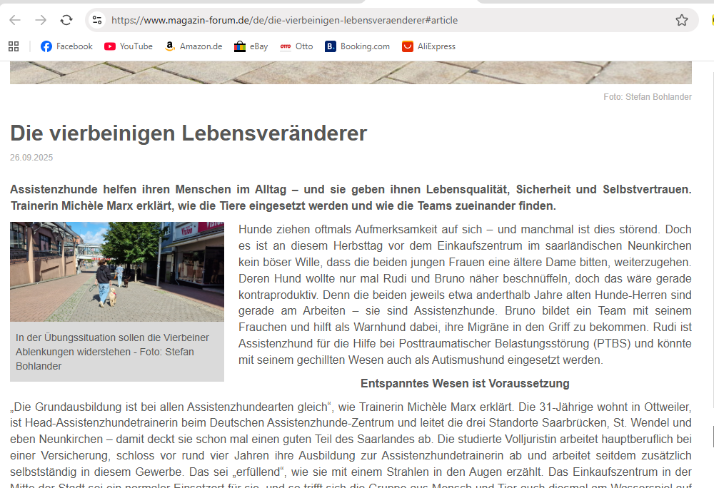 Das Magazin Forum hat Assistenzhundetrainerin Michele Marx zwei Tage begleitet und konnte ein Einblick in das Training bekommen.