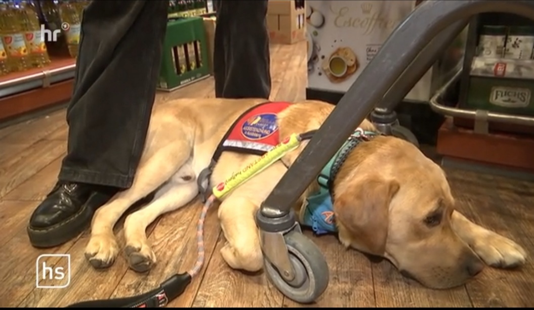 Die Hessenschau hat einen Artikel und ein Video veröffentlicht zu Assistenzhunden. Dabei ging es darum, dass Assistenzhunde-Teams seit einem Jahr keine Prüfung absolvieren können, bis das Gesetz geändert wird. Zu diesem Thema hat sich die Hessenschau mit Assistenzhundetrainerin Petra Köhler und ihrem Team in Ausbildung, Simba und Angélique, getroffen. Der angehende PTBS-Assistenzhund Simba und sein Frauchen wurden dabei in der Hessenschau auch im Supermarkt gefilmt, wo das Team während der Ausbildung schon herzlich willkommen ist, zum gemeinsamen Einkaufen und Üben.
