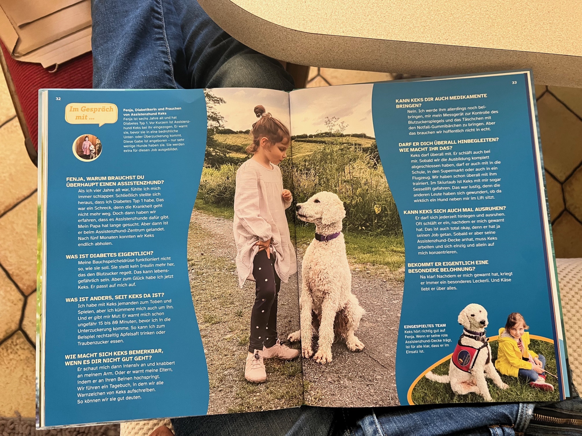 Kennst du aus deiner Kindheit oder von deinen Kindern die „WAS IST WAS“-Bücher? Vor einer Woche ist ein neuer, aktualisierter Band zum Thema Hunde erschienen, der auch Assistenzhunde vorstellt. Für diesen Band hat „WAS IST WAS“ Fenja und ihren Diabetikerwarnhund Keks besucht. Keks wird derzeit von unserer Assistenzhundetrainerin Petra Köhler ausgebildet.