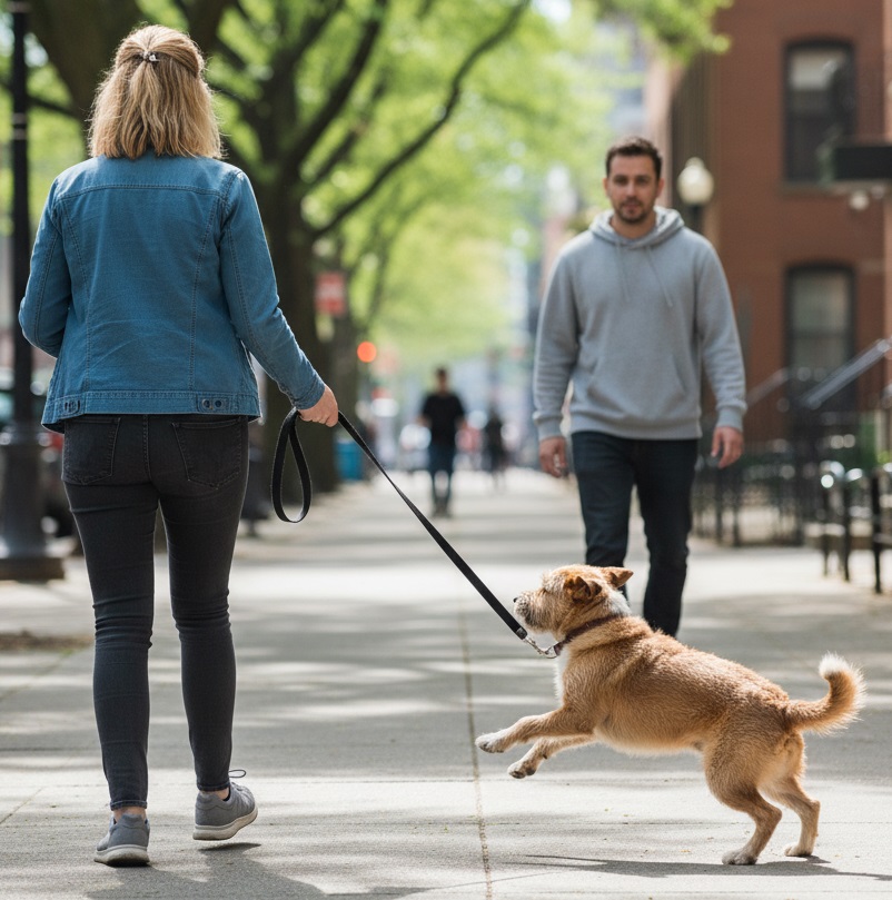 Eine Kundin mit posttraumatischer Belastungsstörung (PTBS) berichtet, dass ihr Junghund neuerdings immer nach vorne springt, wenn auf dem Fußweg jemand entgegenkommt. Aus diesem Grund wechselt sie bei jeder Begegnung die Straßenseite.