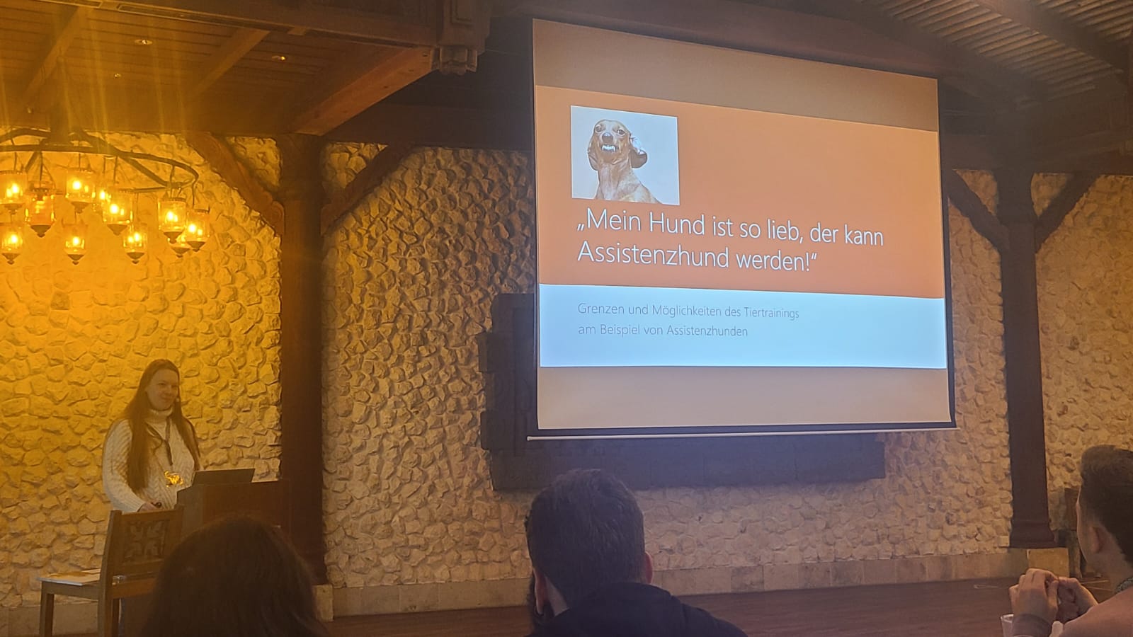 Vom 17. bis 19.10.2025 fand im Zoo Leipzig das jährliche Tiertrainingsseminar für Zootierpfleger statt. Unsere auszubildende Assistenzhundetrainerin Charlotte Picht, die im Zoo Leipzig als Trainerin für die Seelöwen zuständig ist, nutzte die Chance, den Fokus von Elefant, Tiger und Co. auf unsere vierpfötigen Helfer zu lenken. Sie trat als Dozentin im Rahmen einer einstündigen Präsentation mit folgendem Thema auf: