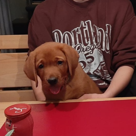 Züchterin Nadine Hertel, ist gelernte Erzieherin und hat zwei erwachsene Kinder und hatte ihr Leben lang schon Hunde. Vom Bernhardiner ist sie irgendwann beim Labrador gelandet und züchte nun seit 2022 Labrador Retriever im Europäischen Rassezucht Vereine.V.in der Farbe Foxred. Sie wohnt in einem großen Haus mit Garten in ländlicher Gegend, ist selbstständig und verbringt fast den kompletten Tag mit ihren Tieren. Zurzeit macht sie eine Weiterbildung zur Tiergestützten Therapie, Therapiehundeführerin und zur Hundetrainerin. Ihr Ziel ist zunächst sowohl Hunde selbst in der Therapie einzusetzen, als auch spätere Therapiehundeführer bei ihrer Ausbildung zu unterstützen. Weiterbildungen sind für sie sehr wichtig, und daher ist sie damit nie wirklich fertig, sondern sucht ständig ein neues Ziel. Ihr Hunde leben als Rudel mitten in der Familie (es findet keine räumliche Abtrennung statt) und die Welpen wachsen im Wohnzimmer mit sämtlichen Geräuschen und vielen verschiedenen Personen auf, sie werden täglich durch geknuddelt, lernen verschiedene Untergründe kennen, verschiedene Spielzeuge und natürlich das Rudel. Die Welpen lernen außerdem die Kaninchen und Pferde kennen. Es ist ihr wichtig, dass die Welpen möglichst viele reelle Situationen kennenlernen wie Stadt- und Landleben, Autofahrten, Waldspaziergänge und so weiter. Hohen Wert legt sie auf den Deckrüdenbesitzer und auf die ausgiebigen Gesundheitstests, also weit über den geforderten Standard der Rassenzuchtvereine hinaus.