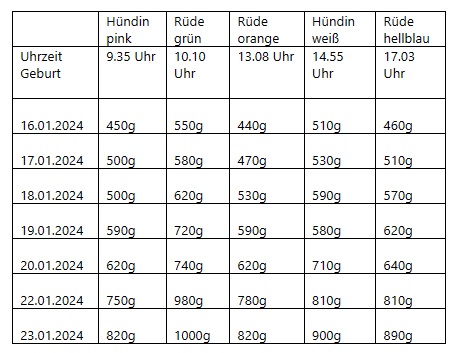 Die Welpen sind am 4. April 2022 in der Zeit von 20.00 bis 22.30 Uhr geboren.