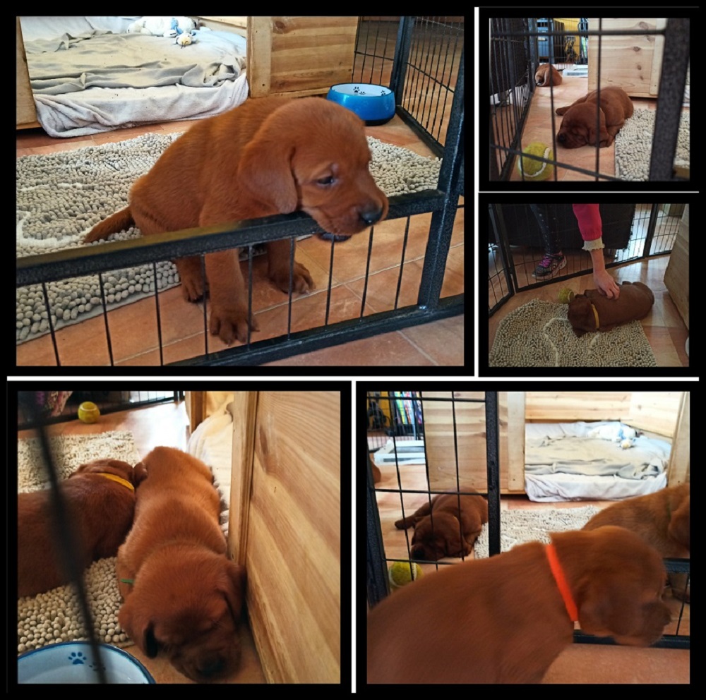 Besonders lieben die kleinen Labrador Retriever das Spazierengehen im Garten. Der Radius im Garten, der erkundet wird, wird immer größer und die Welpen trauen sich immer weiter in den Garten hinein. Sie haben sogar angefangen, ihre Geschäfte auch draußen im Garten zu hinterlassen.